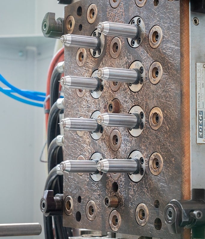 Wir bieten Ihnen ein eigenes, langjährig etabliertes Kaltkanalsystem zur Verarbeitung vieler bekannten Elastomermaterialien. Mit dieser Entwicklung und der jahrelangen Erfahrung auf dem Gebiet der Kaltkanaltechnik mit Nadelverschluss, konnte sich EDEGS weltweit einen Namen machen. In Anwendungsfällen mit LSR, HTV und Gummi liegen die Hauptvorteile unserer Technik unter anderem in der direkten Anspritzung mit Nadelverschluss. Weitere Vorteile liegen in der Materialeinsparung, der Einbindung in rationelle Verarbeitungsverfahren und in der Optimierung von Zykluszeiten.